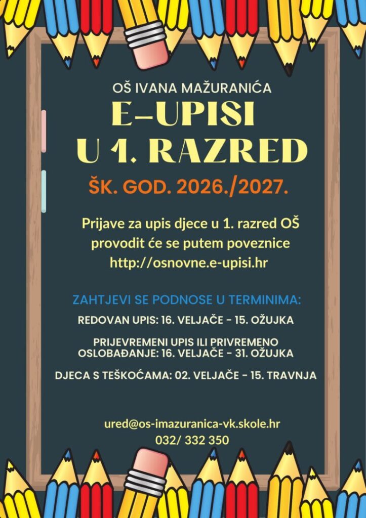 Plan upisa djece u 1. razred osnovne škole u školskoj godini 2026./2027.